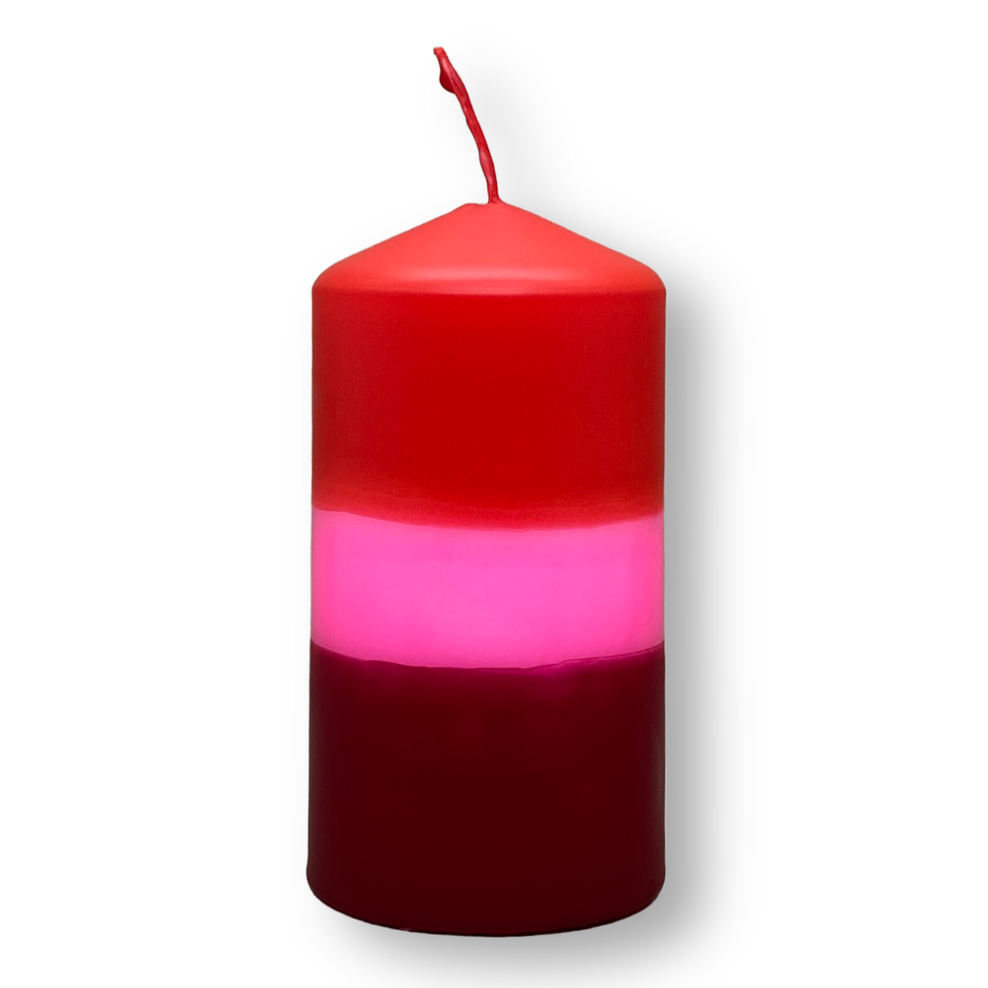 Die Kerzen werden von Hand gefärbt. Daher können Farbverlauf und Intensität variieren.